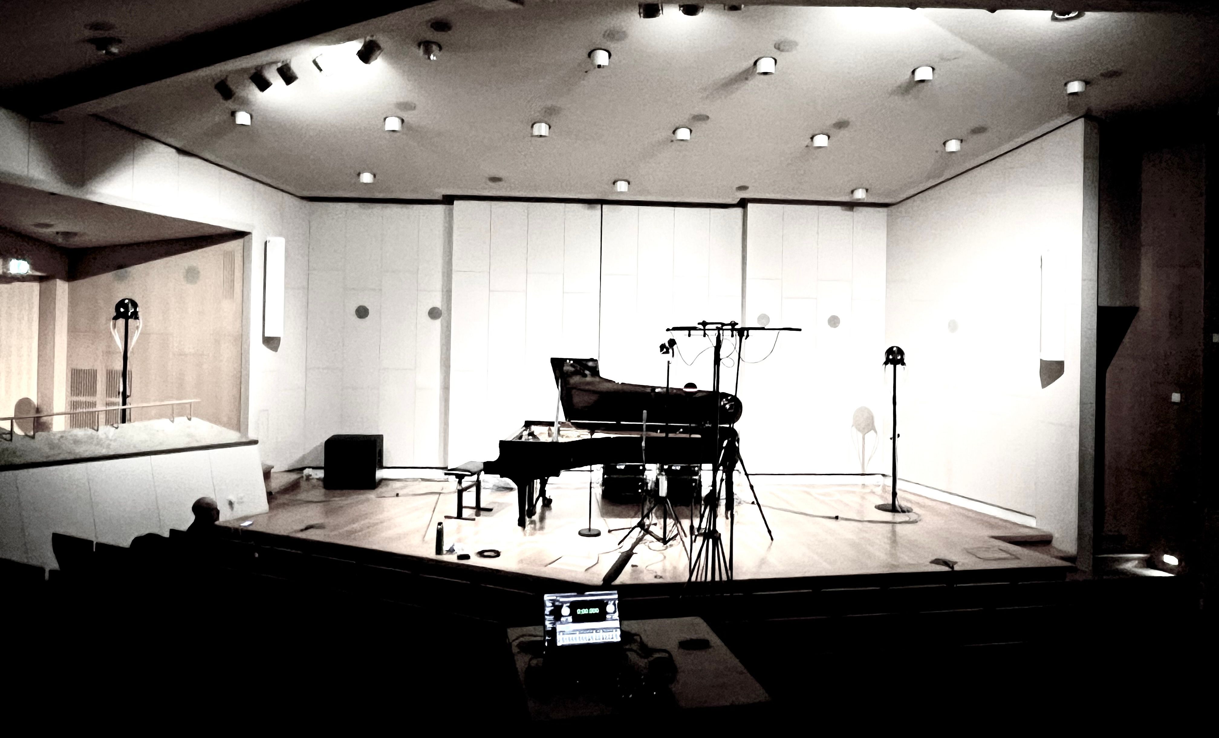 Two sonic entities, a piano and a 3-9-3 3D-audio sound projector, are closely interwoven, while the concrete sonic room transforms into an additional instrument. This interplay unfolds into a triple helix, where three distinct yet interconnected sonic spaces coalesce. Each space, discernible in its unique character, contributes to the creation of an augmented spectromorphology experienced live and in situ.